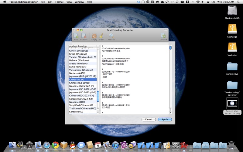 TEConverter (Text Encoding Converter) is an easy to use Mac OS X app that can help you convert your text files from its original encoding to whatever encoding you want (UTF-8 is definitely the best choice).