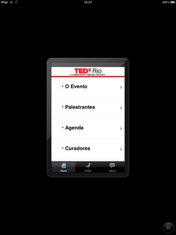 O aplicativo oficial TEDxRio possui tudo o que você precisa para se manter atualizado sobre o que rola nessa excitante e inovadora conferência. Acompanhe a agenda em tempo real e os Feeds do Twitter.