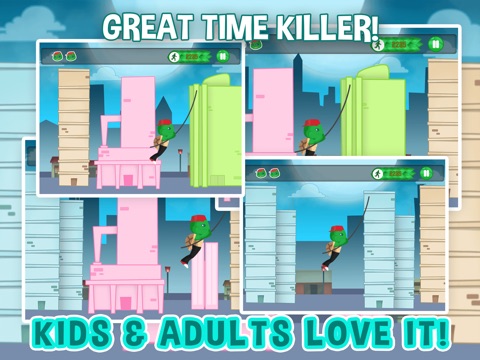 Seeking for some intense swinging action? Catapult the cool and awesome turtle deep into the heart of the city and use his rope to swing from one building to another. Glide across the cities’ skyline and venture into a challenge worth experiencing.
