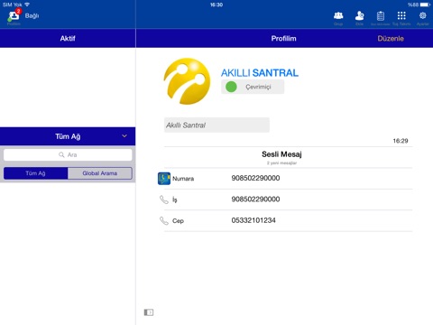 Turkcell Akıllı Santral (*) kontaklarınızla sesli ve görüntülü görüşebilir, yeni nesil bir santralin sağladığı tüm yetenekleri ve daha fazlasını deneyimleyebilirsiniz.