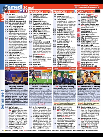 Bien pour le. Magasine très lisible complet Par contre la parution du numérique ne suit pas le papier quant à la date de parution le lundi ? Le n° du 14 Mars a été disponible en numérique que le 21 Mars, les programmes ayant déjà commencé !