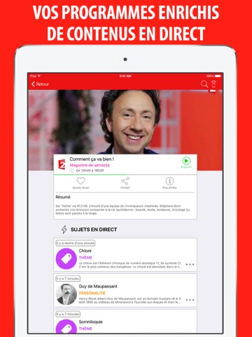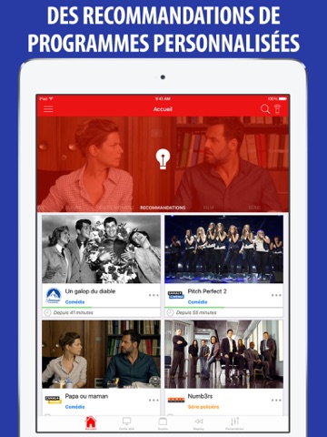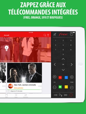 Une grillé télé intelligente, des recommandations, un accès direct aux émissions en REPLAY, les FICHES PROGRAMMES qui senrichissent des sujets abordés pendant les émissions, l’actualité, les TÉLÉCOMMANDES de box : tout est là, accessible dun simple clic sur votre iPhone ou votre iPad.