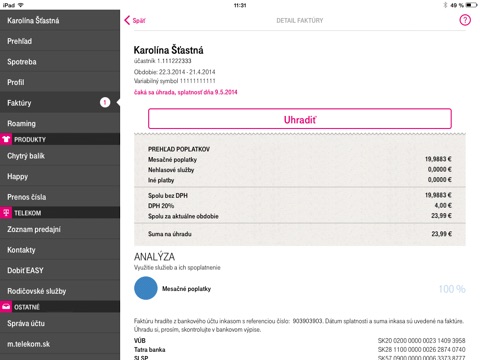 - pridať si do aplikácie všetky vaše mobilné čísla i produkty pevnej siete