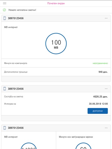 The improved mobile application Telekom MK offers you all the new information on your internet, minutes, roaming and SMS usage on your mobile numbers, and concurrently, it is the best tool for simple and easy monitoring all your fixed and mobile services in one place. In addition, Telekom MK offers you the fastest and safest way to pay your bills and top-up your prepaid voucher. Manage your services and the services of your closest friends and family members anywhere and anytime.