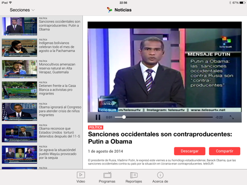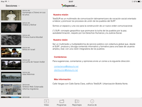 Funziona molto bene. TeleSUR è lemittente televisiva che consente di avere le notizie dal mondo sudamericano. Potete seguire le trasmissioni in diretta sia col Wi-Fi che con il 3G. Utile anche per chi studia lo spagnolo (allo scopo, consiglio anche le app di RTVE).