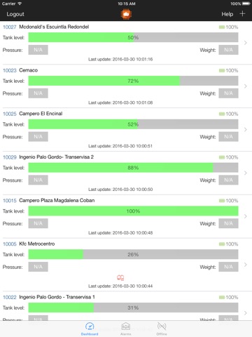 With this app you will be able to have all the information about the connected equipments to Teletank.
