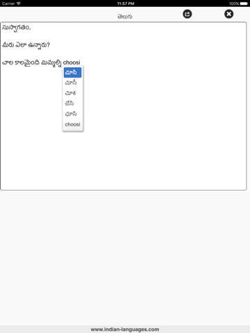 This is a very simple and easy to use application that translates Telugu words typed using English characters to Telugu script. Just type the phonetic word in English and press the Return key or the Enter key -- the application converts that word to most frequently used mapping for that word, choose the correct one and complete your sentence in Telugu script.