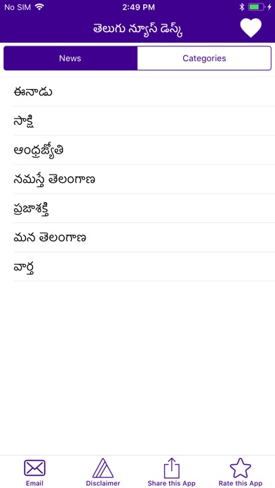 Telugu News Desk is a Telugu news aggregating app which gets the latest news from the states of Andhra Pradesh and Telangana, India. Our app fetches news from various Telugu newspapers like Eenadu, Sakshi, Andhra Jyothi, Namasthe Telangana, Praja Sakti, Mana Telangana and Vaartha. Our app covers news from numerous categories like political, national, state-level, movies/tollywood, business, sports, technology and life-style. Our app has a simple and easy to use interface with focus on best user experience.