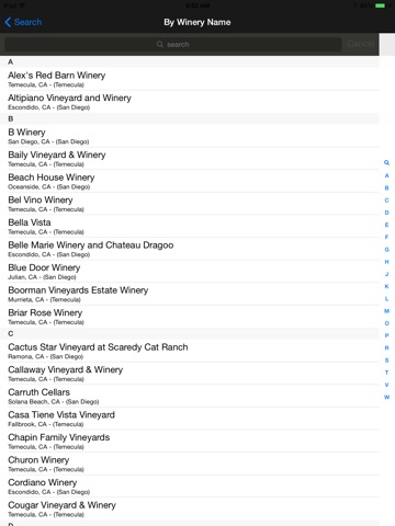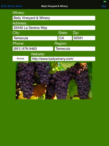 This is the Ultimate Temecula Valley Winery Finder Application for all wine enthusiast and hobbyist. Our application contains data contact information on Temecula Valley and San Diego wineries. At a touch of a finger, you can easily find the address, phone number and website on wineries, vineyards, tasting rooms and cellars throughout Temecula Valley and San Diego, Southern California.
