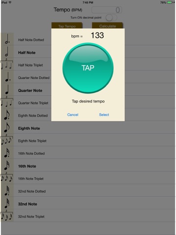 For times when you dont know the exact tempo used in the music you can tap the tempo along with your music source to figure it out. This is handy because not all music is recorded with a metronome (or click track).