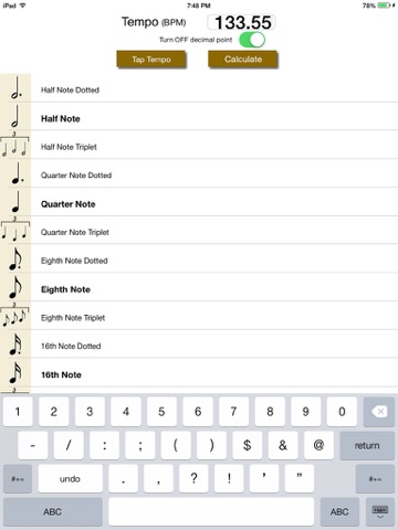 Tempo Delay Calc is the simplest and quickest tool to calculate digital delay times. Perfectly synchronize the tempo of your music to the delay effect. Match the beat exactly!