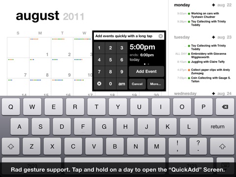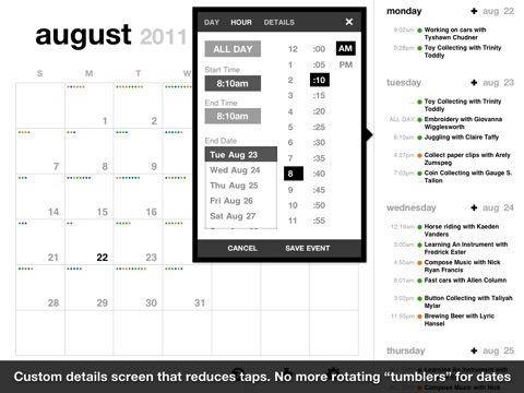 einfachste und schnellste art, termine einzutragen! SUPER SUPER SUPER! und es hat ein richtig schönes design. ich hoffe nur, dass man die schriftgröße in der wochenansicht bald umstellen kann... denn die ist echt viel zu mini!