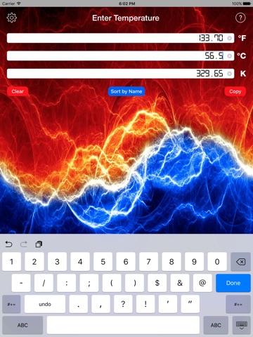 • Instantly converts temperatures to and from Celsius, Fahrenheit, and Kelvin on the fly as you enter them.