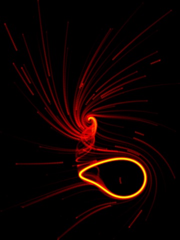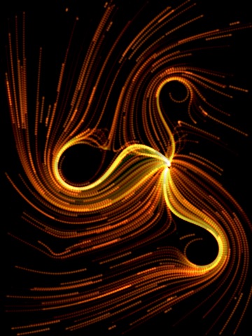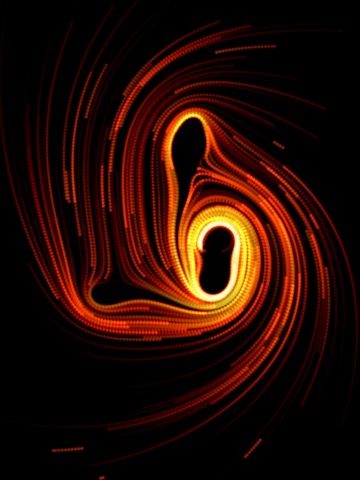 You can interact with the app to add spinner objects, change the direction of the spin, the strength of the spin force, change the color, or move the graviton object.