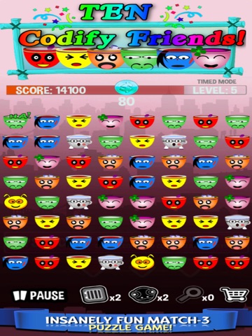 Ten Codify Friends is a match three game that is easy to learn but difficult to master. It is a nonstop blitz of cute cup friends!