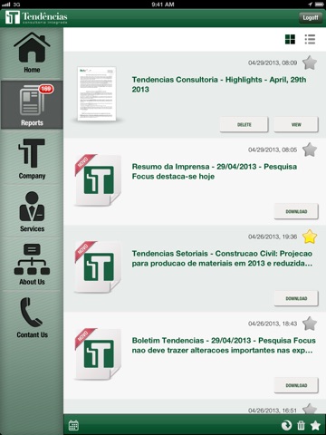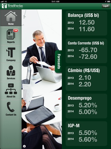 In this app, you can find a description of the services and activities of Tendências as well as some economic indicators and projections. In addition, customers will have the following services: