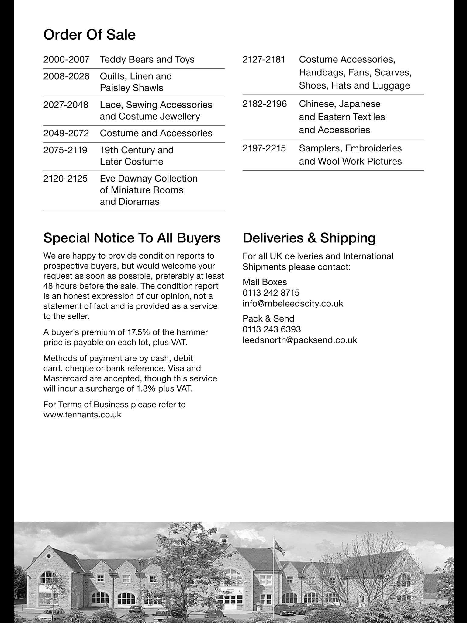 Tennants Auctioneers is a fourth generation family run business and one of the UKís leading specialist auction houses. The award winning 80,000 sq ft premises in North Yorkshire incorporates a calendar of over 80 auctions a year and has exceptional facilities for storing, researching, cataloguing and exhibiting items ahead of these sales.