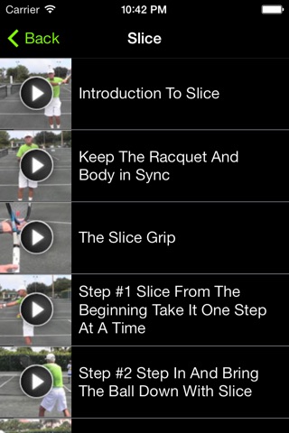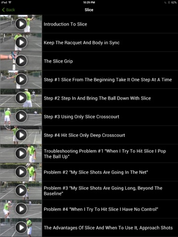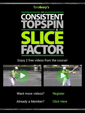 My new course the consistent topspin and slice factor is an apple application based course that includes 35 step-by-step videos teaching you exactly how to hit topspin and slice just like you see Nadal and Federer doing on the pro tour. All the video trainings are shot in 1080p high definition video with the very latest camera technology. Once you register for the course youre given instant access to the apple application and also membership to the online training area where you can start viewing the video lessons on your home computer or laptop.