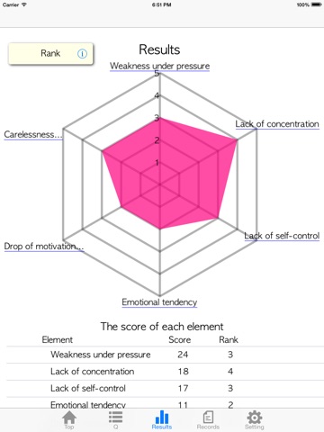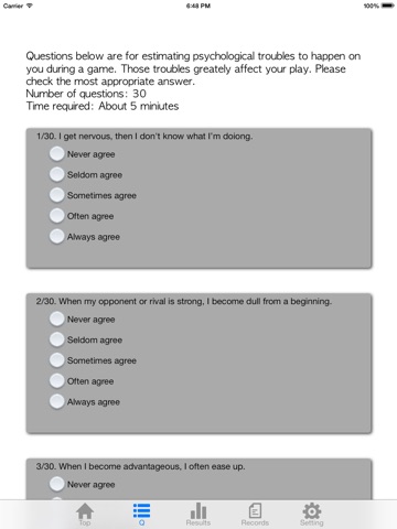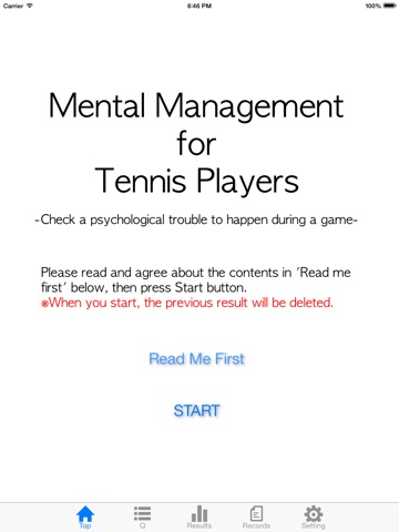 This App is for estimating your psychological troubles to happen during a game for tennis players, by six sides.