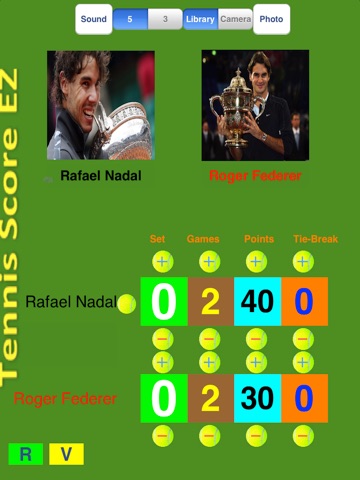 Are you not tired writing down or remembering score while match is going on! We have app that can assist you keep tennis score up to date! If you tap above or below colored buttons (set/game/points and Tie Break counters), it records score for you!