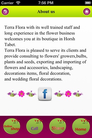 Our app offers the latest available bouquets, and will help us provide a better service to our clients with click to call, online store, latest products and offers.