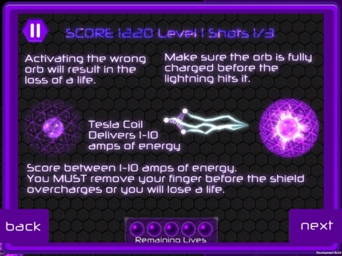 - If you try to take more than 10 points of energy your sphere will overload. Make sure you take your finger off the sphere before taking more than 10 points of energy or you will LOSE A LIFE.