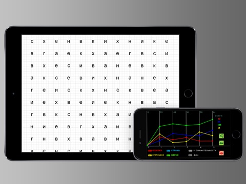 Знаменитый тест Бурдона из разряда "Психологические тесты" позволяющий оценить объем, концентрацию и устойчивость внимания. Продолжительность теста на устройстве занимает 5 или 10 минут. Программа записывает ваши результаты каждую минуту теста и в конце строит график по которому можно определить пик устойчивости, концентрации и объема внимания, а так же их спада на протяжении теста. Каждый пройденный тест и его результаты записываются и доступны для анализа в любое время, что дает возможность не только протестировать себя но и развивать концентрацию внимания.