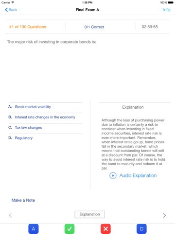 This app includes 830 SERIES 66 FINAL EXAM QUESTIONS straight from the final exam bank of our industry-changing online video pre-license course. Each and every question in this app not only has a detailed written explanation, but also includes a streaming audio file of an instructor explaining each question and answer (please note: you must be connected to the internet when listening to the audio files).