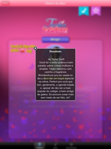 Os testes mais legais da todateen na palma da sua mão! Um aplicativo para passar o tempo, se divertir com as BFFs e se conhecer melhor. São testes de Moda, Comportamento, Beleza, Amor, Paquera, sobre os seus artistas e bandas favoritos e até sobre o seu futuro profissional! E você não precisa estar conectada à Internet para se divertir! Aproveite e baixe já! É free!