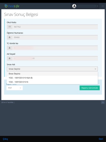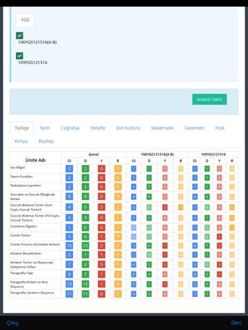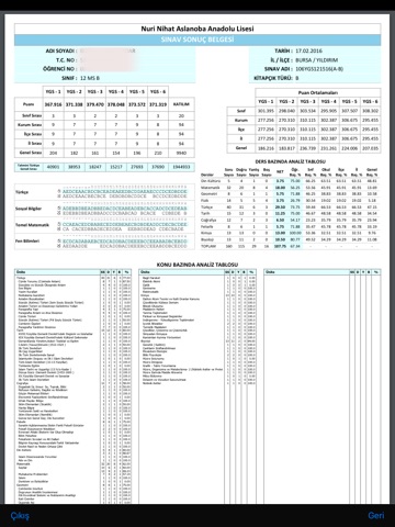 Sınav sonuç karnesi ve analizlerinize erişebilir.