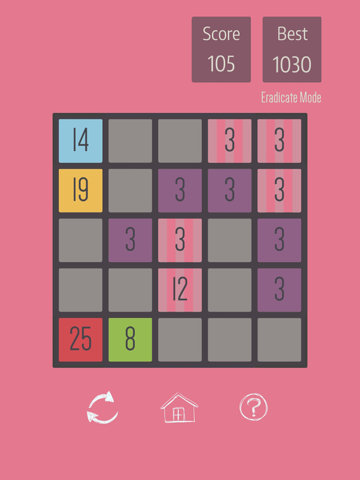 - Eradicate - Stack all the squares of a certain colour in a single position to eradicate them. Once eradicated, that colour will not appear further on the board. A new colour will take its place.