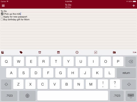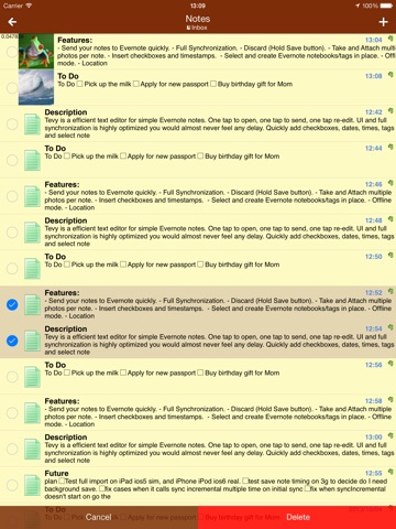 Quickly add checkboxes, dates, times, reminders, bullets, tags and select notebooks. Attach multiple photos per note. Text editing assisted with Clear/Undo/Redo and auto-save.
