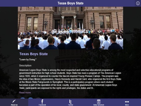 This app is used by the attendees to Texas Boys State, a premier program of The American Legion that teaches High School Juniors about our form of government.