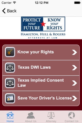 The DWI App is designed to help anyone who has been arrested on charges of DWI (driving while impaired). The app includes useful features to avoid arrest as well as how to deal with being arrested.