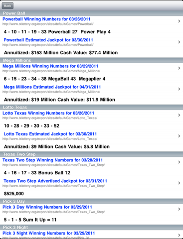 By shaking your device you can generate numbers for all Texas Lottery games including Powerball, Mega Millions, Lotto Texas, Texas Two Step, Pick 3, Daily 4, and Cash Five.
