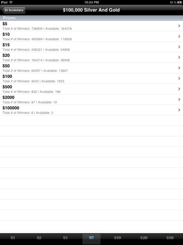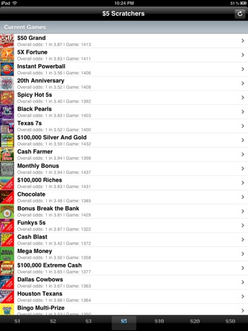 Texas Lotto Scratchers Tracker gives you easy access to a list of current lotto scratcher games in Texas. It gives you detailed information such as odds of winning and prizes you can win from those games. This app also gives you a daily report on the number of prizes claimed for each prize. This information is updated once a day. You get an easy to view table showing the total prizes claimed each day and prizes available. From the up or down trend, it can give you an educated guess as to which games to play.