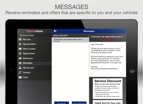 Make your vehicle ownership experience easy with the free Texas Nissan of Grapevine mobile app. This feature-rich app allows you to get the most out of your vehicle by helping you to maintain and organize essential car details like service history, as well as save money with mobile offers and coupons!