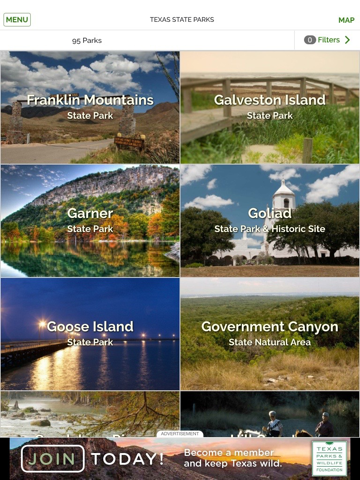 Typical Texas. This app was written by somebody with no funding. Appears the oil industry took the money. Searching for a park near you, looking for natural wonders, booking campsites, you will have to go to the main website for this. There are no interactive maps on it, no identification of your location, and a quick identification of the parks near you, nor a quick calendar of events at the front end. I just hope they didnt pay someone to much for this, if at all. Very disappointed