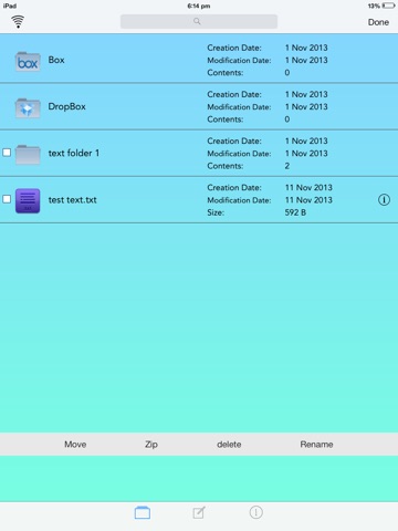 File Manager is the ultimate app to organise and view all files on your iPhone and iPad. It can catch documents from PC or Mac via USB cable or WIFI, email attachments, Cloud Services (Dropbox and Box) and save it on your iPhone, iPod Touch or iPad locally & Easily view images, audio, videos, PDF document, Word documents, Excel documents, ZIP/RAR files and more.