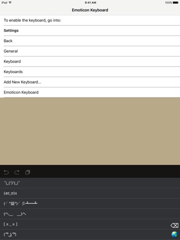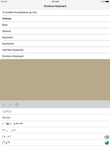 Skip the massive hassle it is trying to find all those great text based emojis, and have them all in one easily accessable place, a keyboard! Including everyones favorite: ¯_(ツ)_/¯ and over 30 more. Either use the keyboard as intended, or copy the emojis from the app