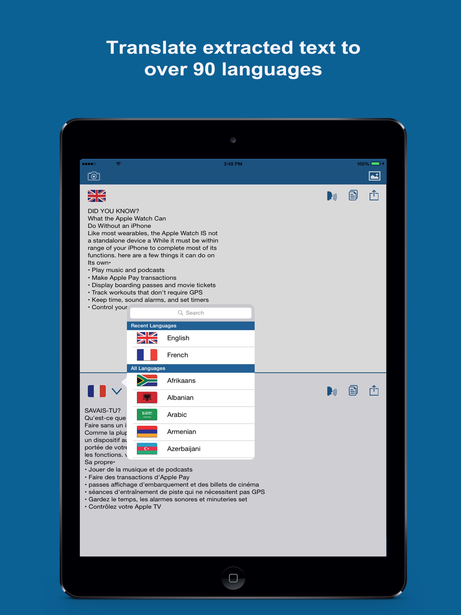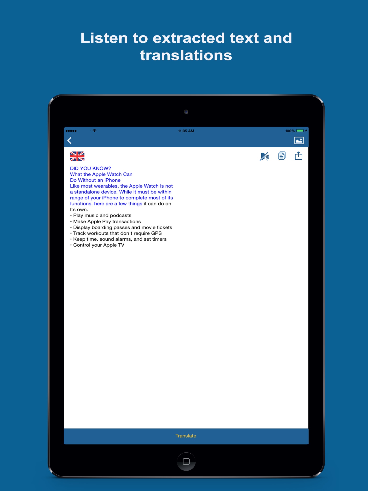 Text Extractor & Translator is the ultimate solution for all these situations. Just hold your devices camera at the printed material and the app will instantly capture , extract , translate and read out the text !