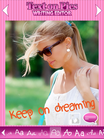 The most fabulous app for girls and boys who want to edit pictures and add text is here and its called Text on Pics Writing Editor! Our photo manipulation app is one of those popular applications that you simply must have on your smartphone or tablet. Adding words to pictures is extremely popular these days, and if you want to rule the social media we recommend you to install this photo writer editor and start retouching your photos. It has never been more easier to put love text messages on pics, or some inspiring quotes about life or friendship and set your piece of art as your profile or cover photo. Everything you need for putting text on pics you can find in our brand new pic editing app Text on Pics Writing Editor, so download it now for free!