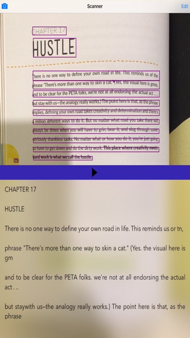 Text Scanner (English), scans documents, edit text and show parts of speech.