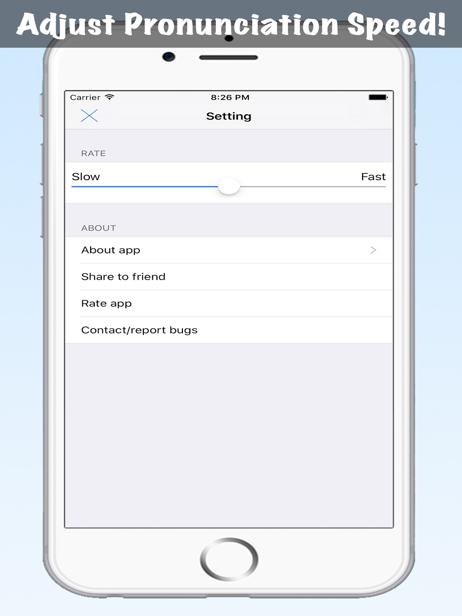 - Adjust pronunciation speed to suit your needs!