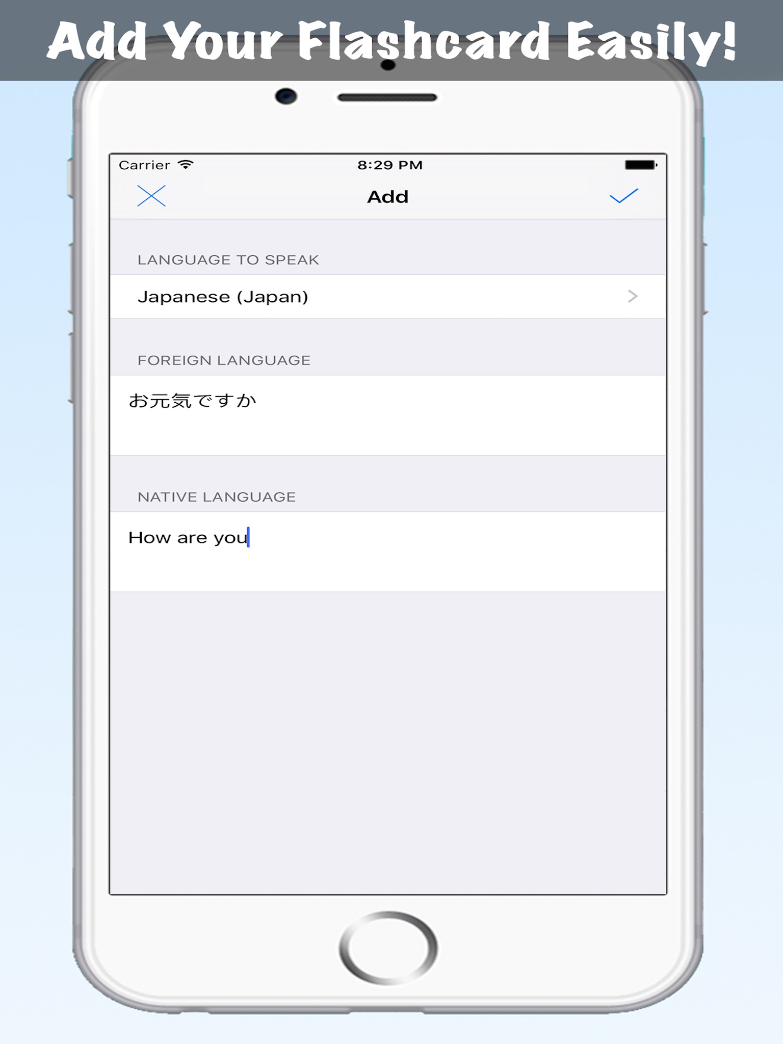 - Add TTS flashcards easily with your original language!