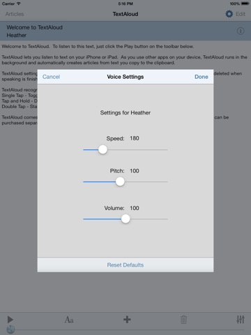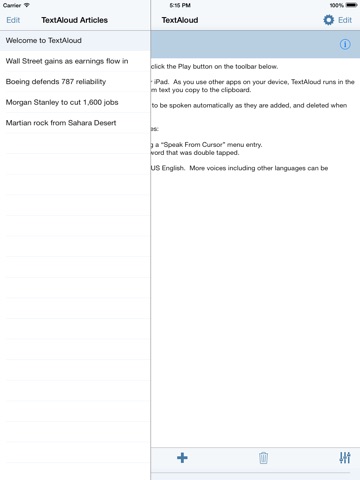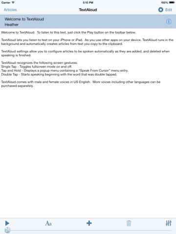 NextUp.com is pleased to be offering our new TextAloud App for the iPhone, iPad, and iPod Touch devices. Since 2000, we have served hundreds of thousands of satisfied customers who use our TextAloud PC software. Our TextAloud App is a basic reader so it does not yet have many of the features in the TextAloud PC version, but we think you will find it useful and we plan to continue improving it. TextAloud helps many with dyslexia or other reading disabilities improve reading and comprehension. Also business people, students at all levels, writers, lawyers, second language learners, and more find TextAloud to be an essential tool they use daily.
