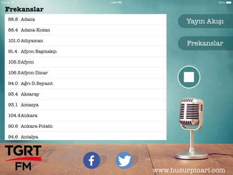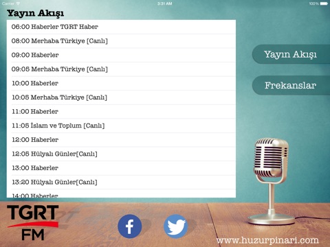 This application prepared for listen to TGRT FM radio station from internet by Tüplü Televizyon supports. And also last 10 day web arcihive programs.