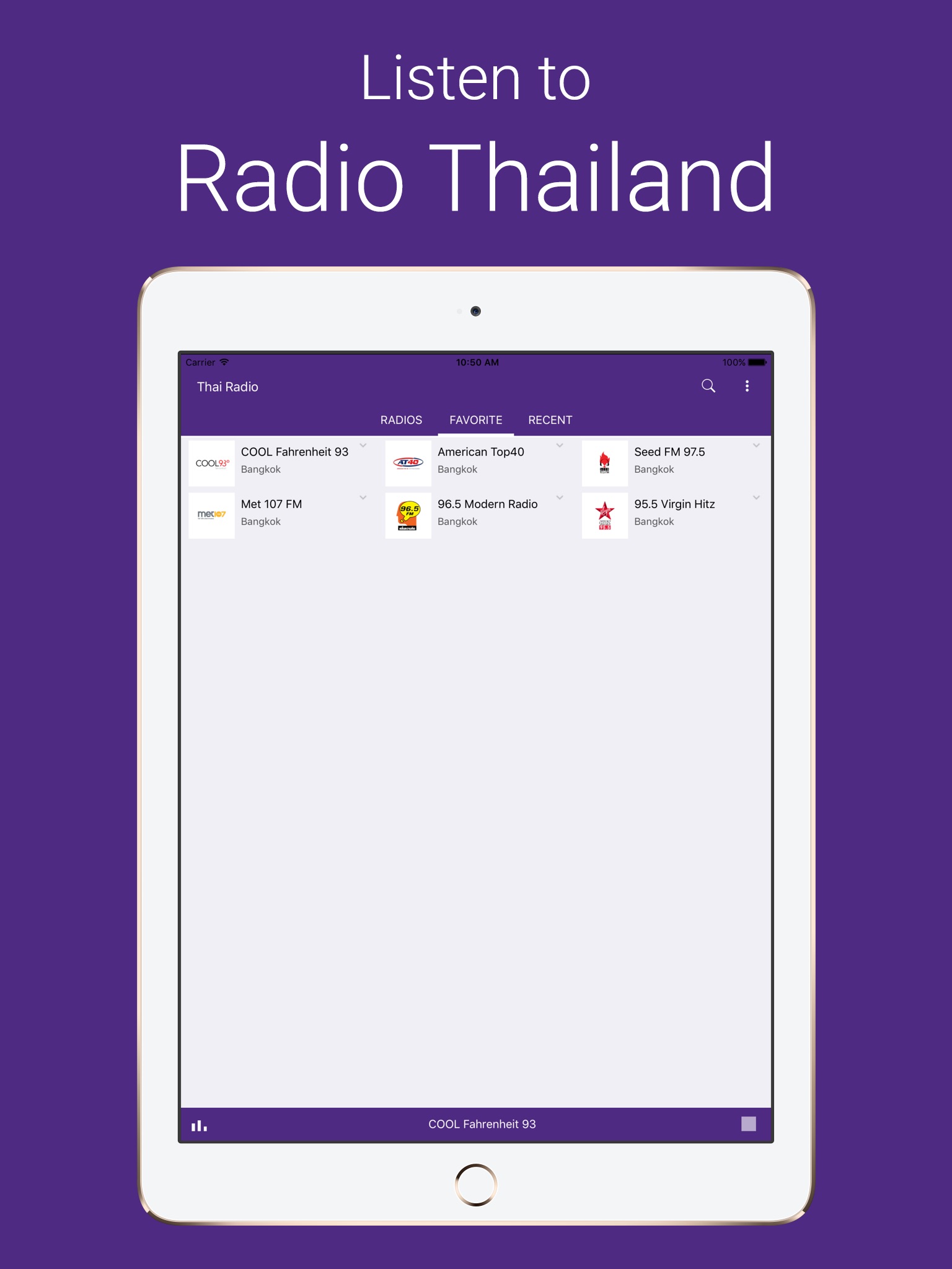 Note: Some radios may be temporarily unavailable, it depends on the providers and not of Radio Thailand.