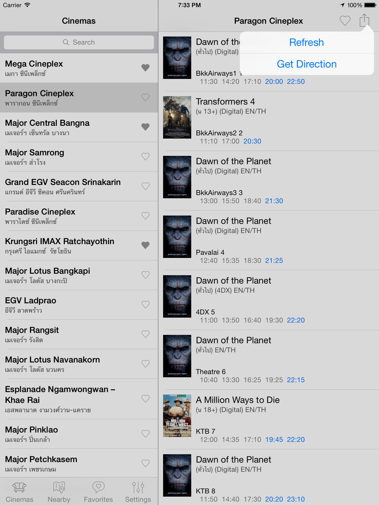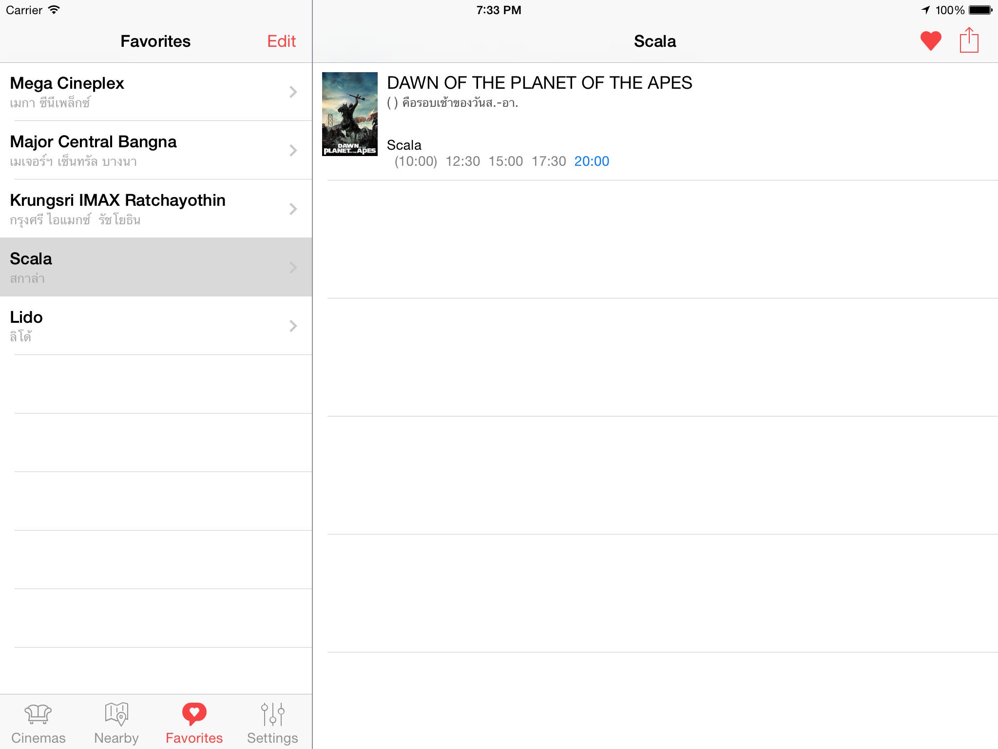 App for checking movie showtimes in Thailand for both SF, Major, Apex, Major Hollywood and U-Hollywood. App emphasize on simplicity and ease of use, focus on just one thing "showtimes".