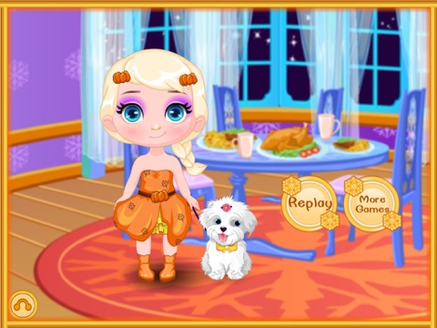 It is the first thanksgiving for baby elsa and as her babysitter, you will have to get her ready. start with a bath and was her entire body and hair to clean them up, rinse well, then wipe her with a soft towel and blow dry her hair. now dress her up in the perfect outfit for thanksgiving. braid her hair or put it in two ponytails. you can choose for her a complete outfit, like an indian one with fringes and feathers, a cool one with turkey prints, over the knee boots and a beanie hat, a cute one with a colorful ruffled skirts or an orange autumn inspired strapless dress. you could also mix and match a purple shirt with a knitted vest, a precious top with turquoise ribbons or a warm orange cape with fur with lovely printed or ruffled skirts. make sure you pick the right accessories. enjoy playing baby elsa first thanksgiving!